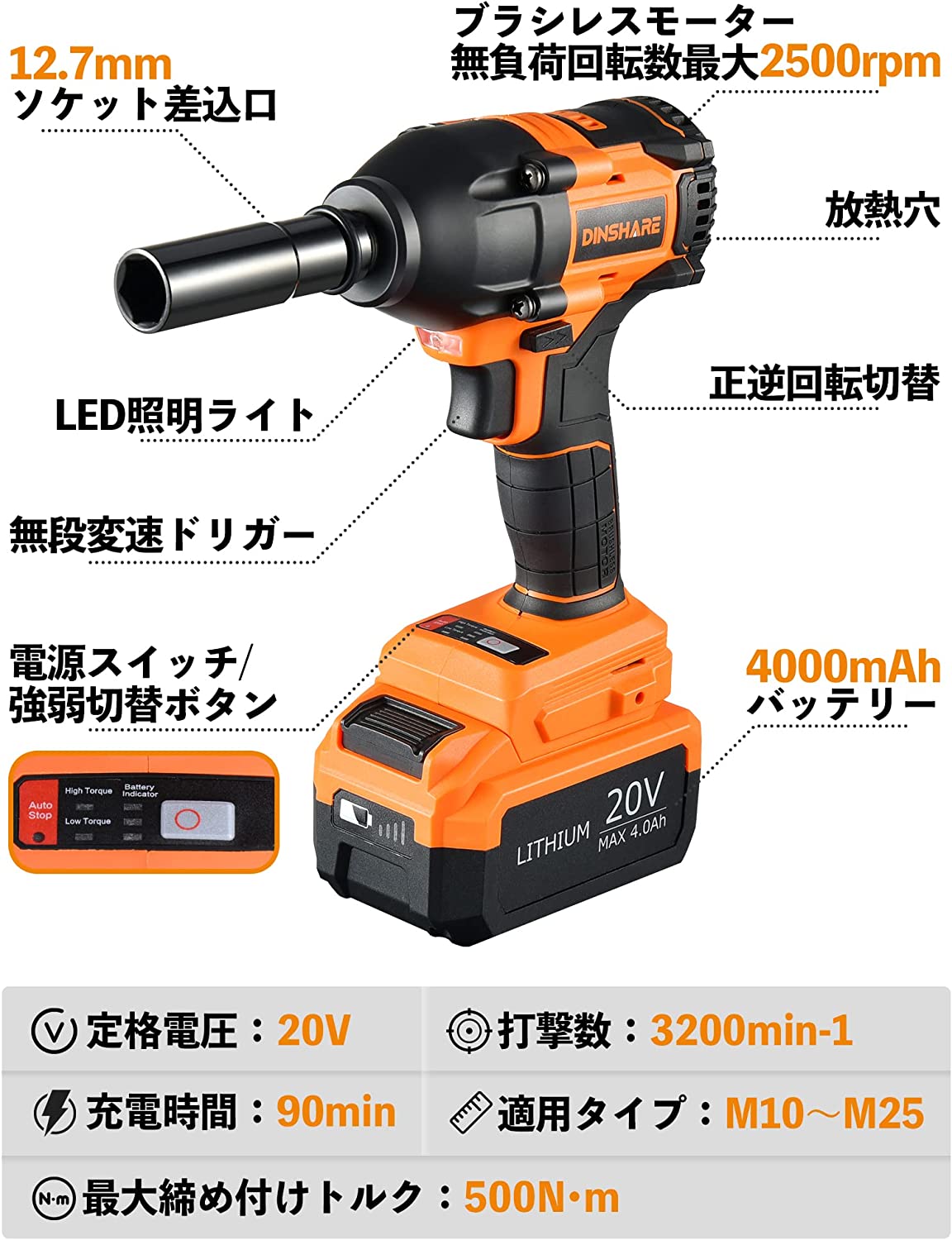 購入先リンク:DINSHARE電動インパクトレンチ JC9901
