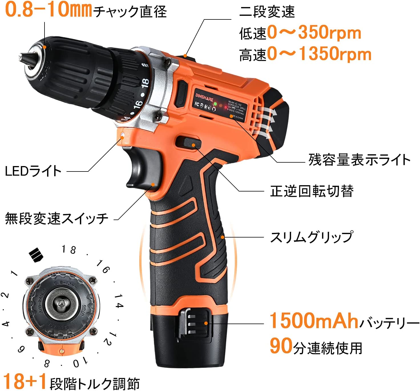 購入先リンク:DINSHARE12V電動ドリルドライバー JC-102