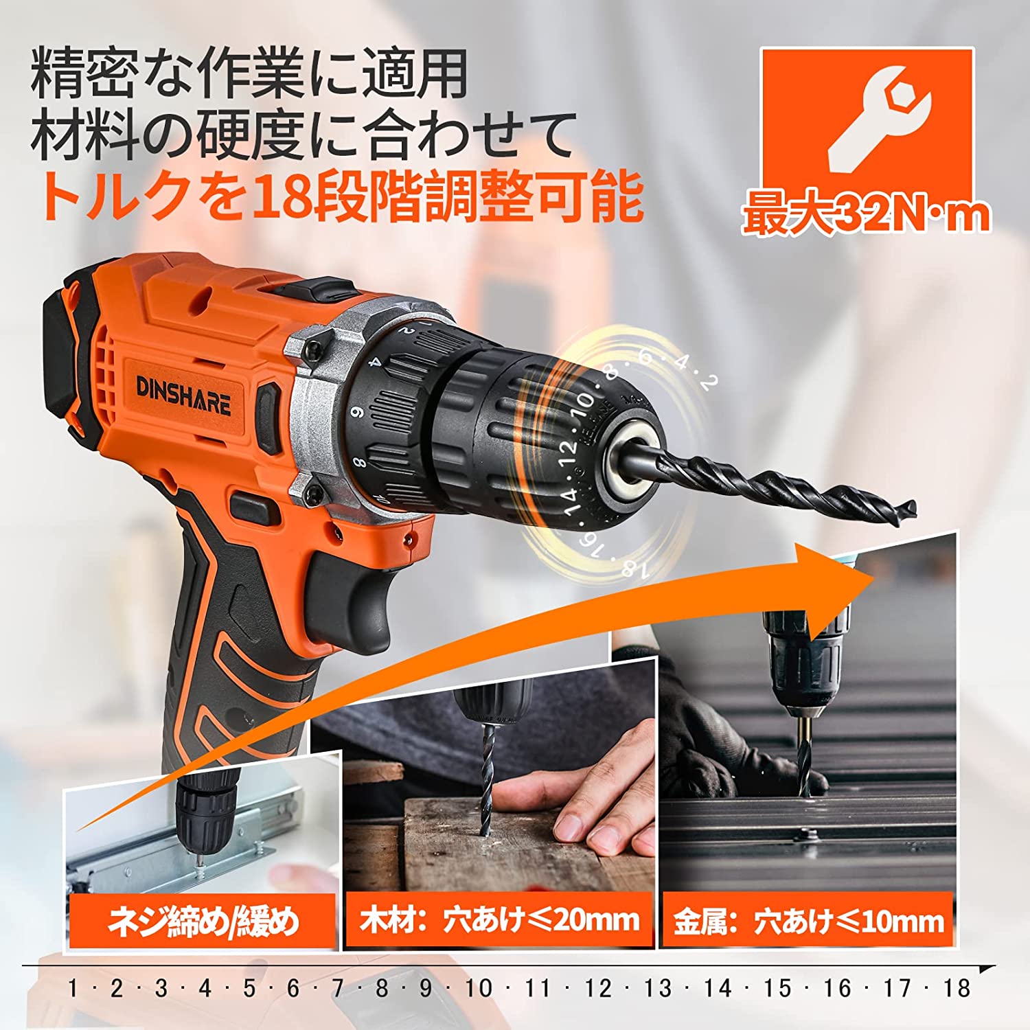 購入先リンク:DINSHARE20V電動ドリルドライバー JC-106