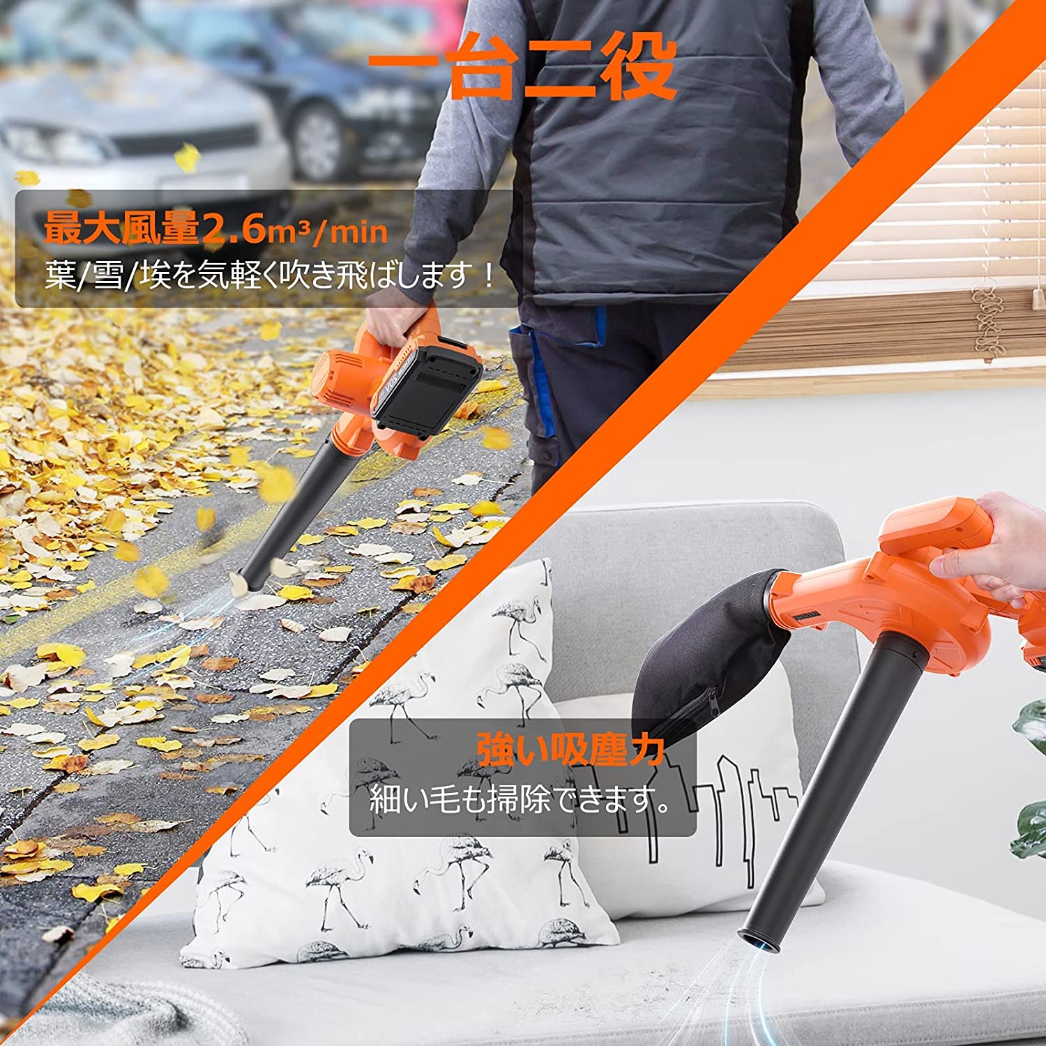 また、バーベキューの火起こしや雪の吹き飛ばしなどにも利用でき、コードレスタイプで最大2時間半の利用が可能です。逆に吸気口の方にノズルを付けて、掃除機としての利用も可能なのも面白い機能です!
