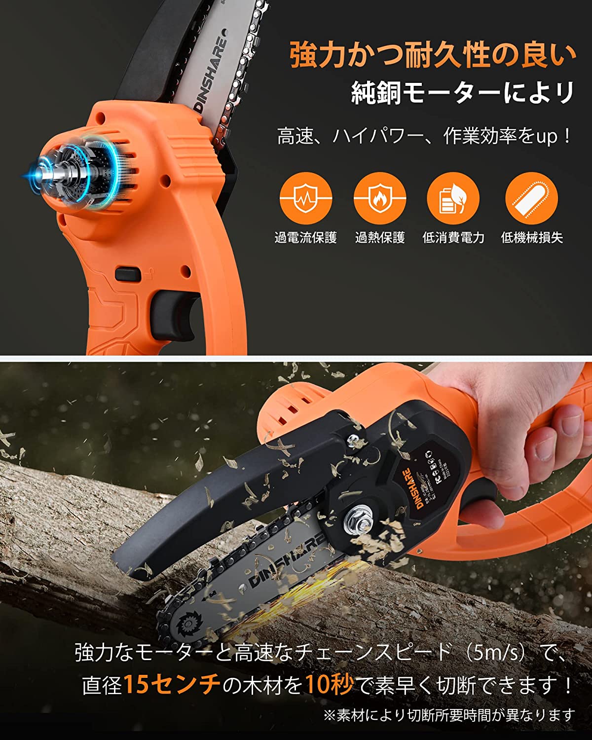 購入先リンク:DINSHARE 4インチ電動チェーンソー JC-6001