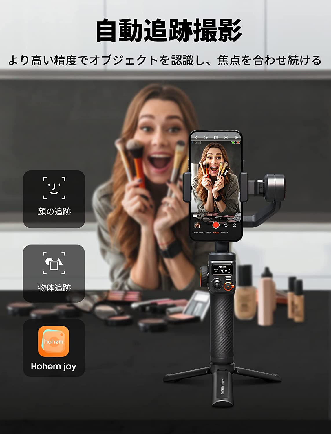 hohem M6スマホ用ジンバルには、自動追跡機能が搭載されており、顔の追跡に制限がなく、常に被写体を中心に追跡して撮影することができます。