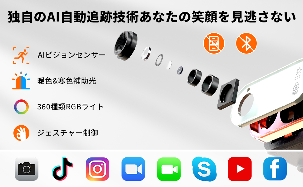マグネットで取り外し可能な補光ライトで、夜間など低照度環境での撮影をよりクリアな高画質にする事ができます。また、360種類のRGB雰囲気ライトは、ホイールで簡単に調整でき、どんなシーンでも美しい肌を演出することができ、自分撮りやビデオ録画、ライブ配信などに最適です。