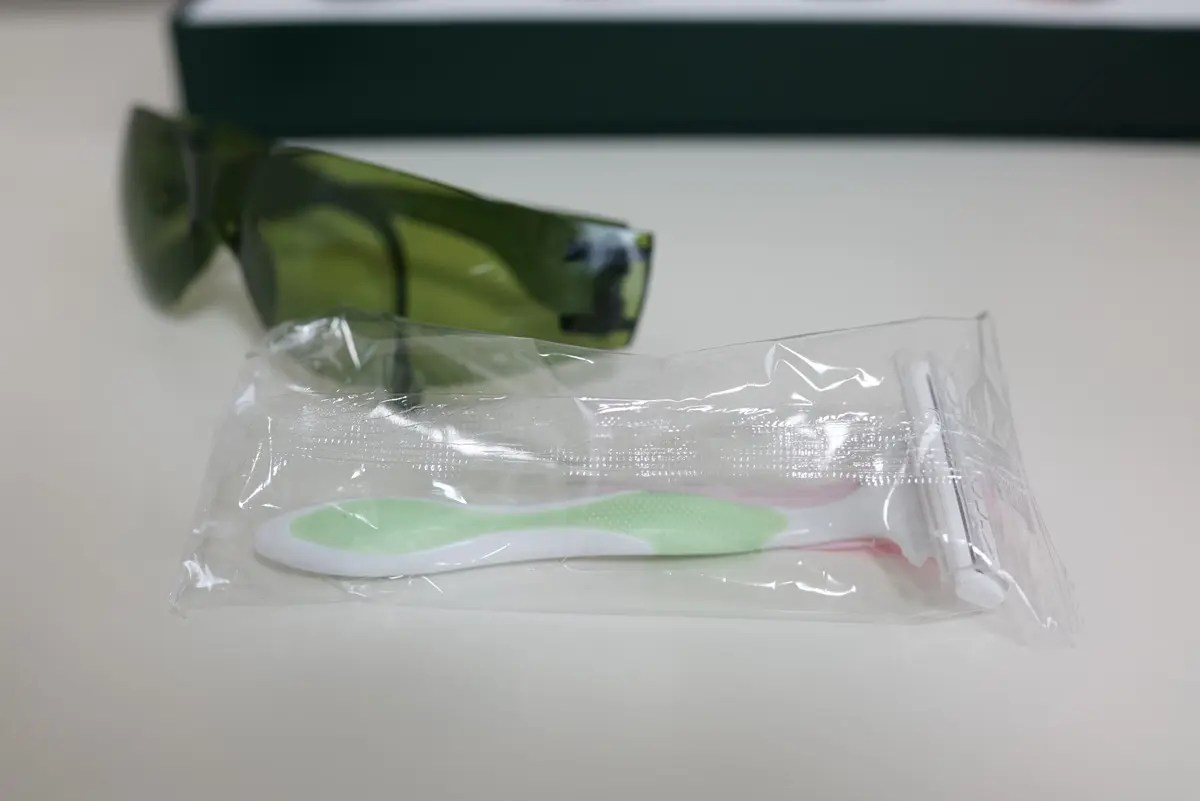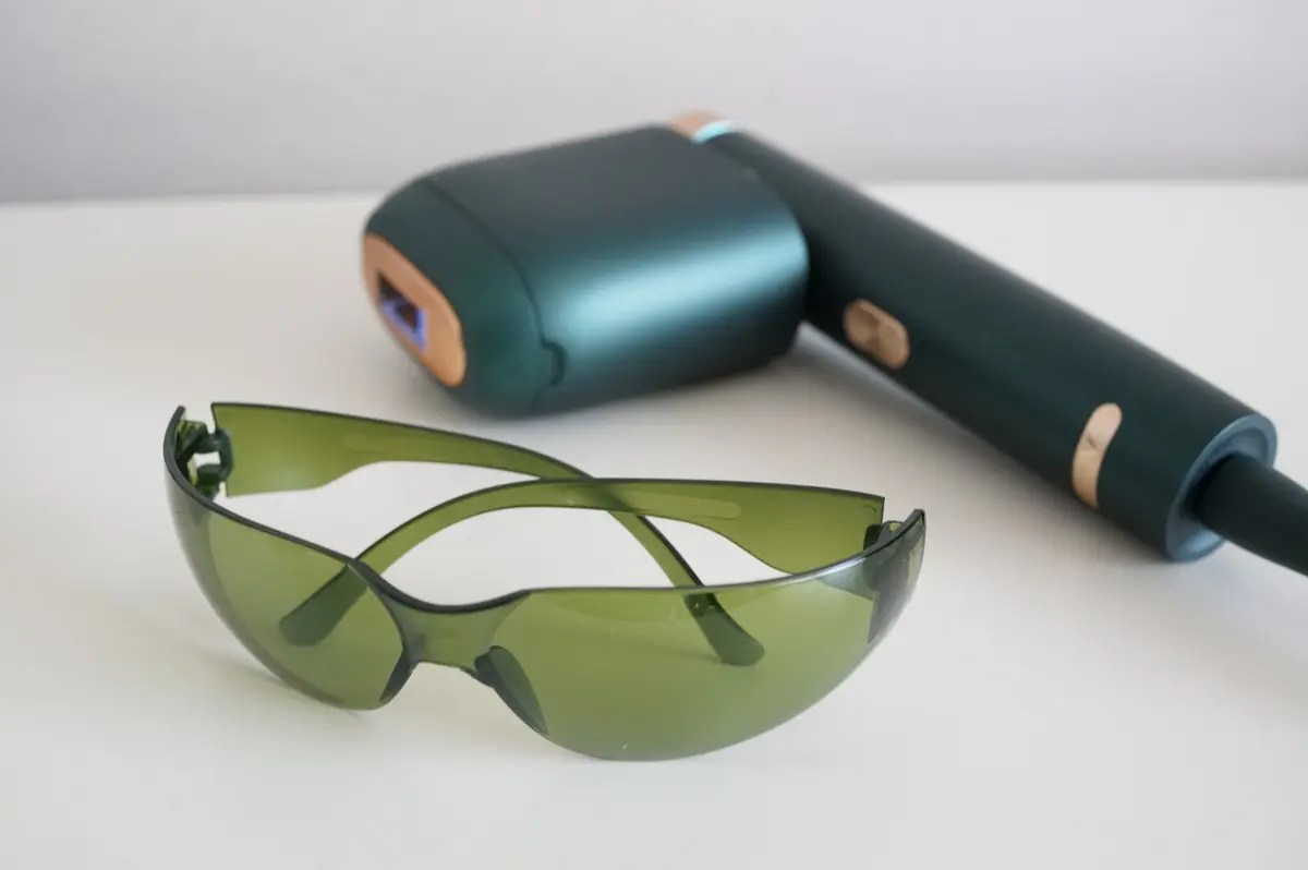 またIPL脱毛法は強烈なパルスライト(IPL波)で脱毛をするので、目の保護が必要です。JOVS VENUS PROには目の保護用のサングラスがついているので、これを装着して脱毛を行います。