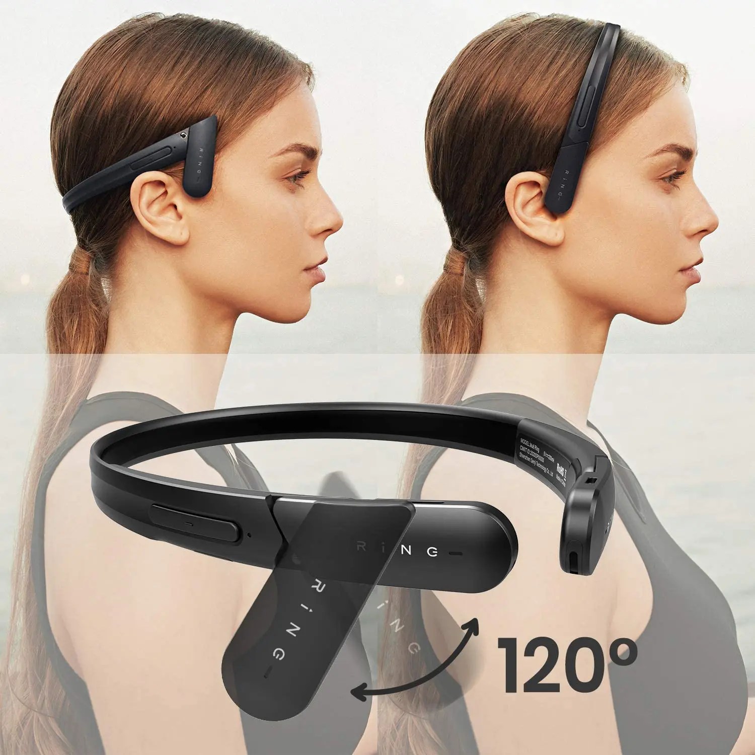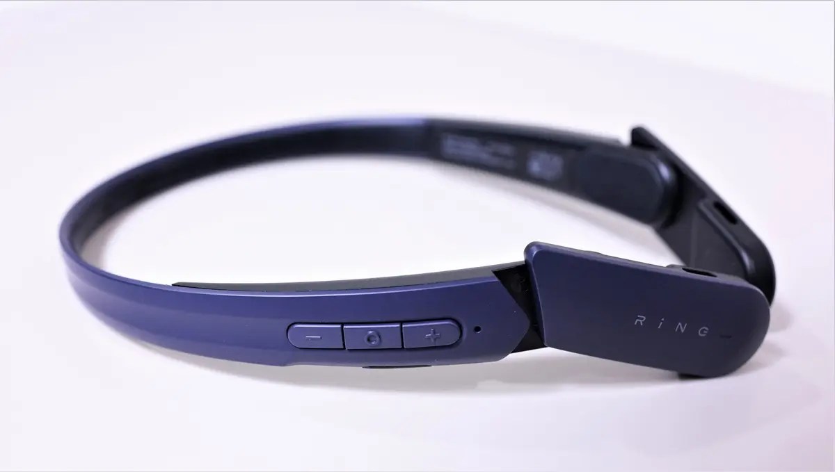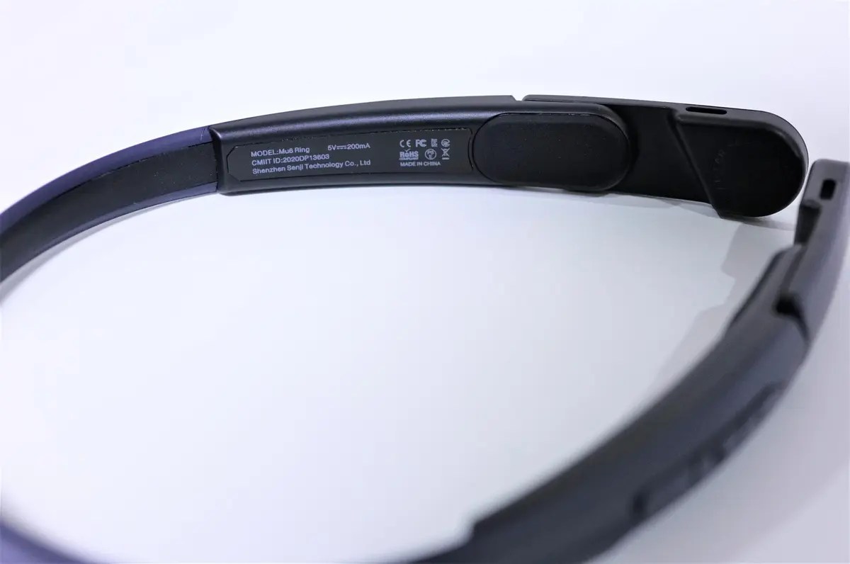 Mu6 Ringの個性は、装着方法にもあります。よくある骨伝導イヤホンのような耳掛けスタイルと別に、ヘアバンドのように付ける事もできます。