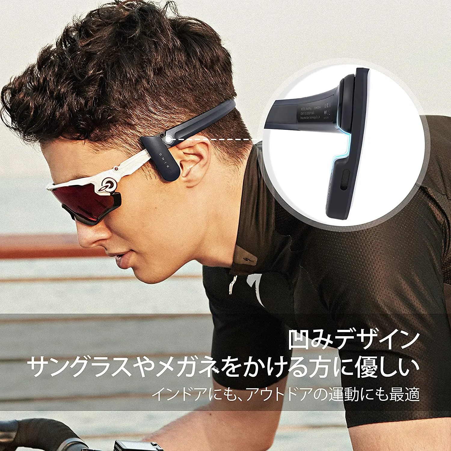 また、眼鏡やサングラスと干渉しがちな耳掛け部分にへこみがある事で、眼鏡と一緒につける事が可能です。耳掛け式の弱点である眼鏡との干渉をクリアしている点はポイント高いですね。